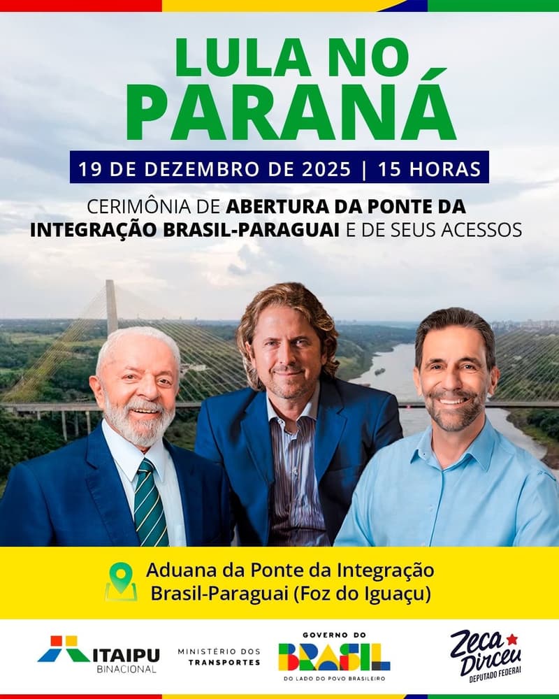Brasil anunció la habilitación parcial del Puente de la Integración para el viernes 19, a las 15:00, con un acto previsto en Foz de Yguazú y la presencia del presidente Luiz Inácio Lula da Silva. La estructura une Presidente Franco, en Paraguay, con la ciudad brasileña. Sin embargo, del lado paraguayo no existe confirmación oficial del evento, pese a que se trata de una obra binacional clave para el tránsito fronterizo.