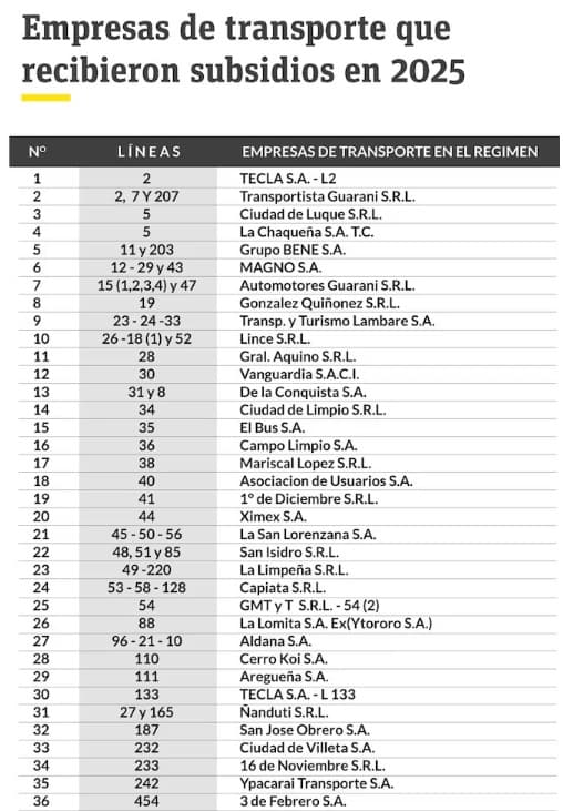 Los cálculos del Viceministerio de Transporte se basan en datos recogidos entre enero y octubre de 2025. Sin embargo, la Asociación Nacional del Transporte Público (ANTP) presenta cifras que contradicen los informes del MOPC. Según esta consultora externa, los valores de referencia estatales son insuficientes para la prestación del servicio. Los montos calculados estarían un 15% por debajo de lo necesario para cubrir los gastos reales. Por lo tanto, el desfasaje financiero impide que las empresas puedan renovar sus unidades o mejorar la frecuencia.