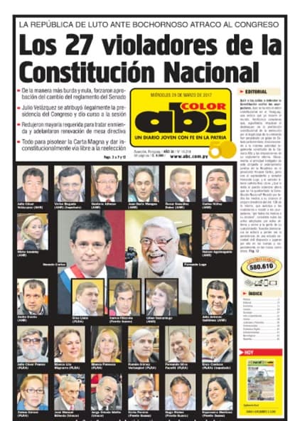 Se cumplen nueve años de la sesión irregular del Senado que desencadenó una de las mayores crisis políticas recientes en el país. El 28 de marzo de 2017, un grupo de 25 senadores impulsó una modificación del reglamento interno. Esta acción fue considerada un “golpe” por sectores opositores.