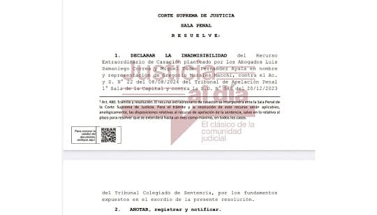 La Corte también tuvo en cuenta que ya existía un fallo de segunda instancia. Ese tribunal había confirmado la condena dictada en diciembre de 2023 por el Tribunal de Sentencia.