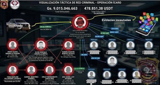 El operativo Ícaro permitió la detención de ocho personas involucradas en un esquema de ciberdelincuencia que sustrajo G. 9.000 millones de una cuenta bancaria. La investigación, encabezada por la Fiscalía, identificó a más de 400 implicados en el sistema utilizado para desviar fondos.